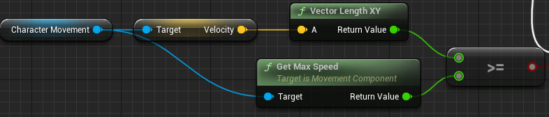- 캐릭터가 움직이고 있는 속도와 최대속도를 비교하여 같거나 클 경우 공격실행