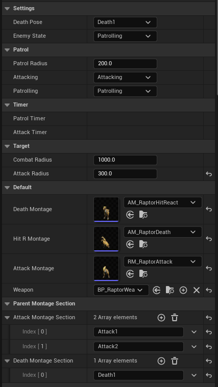 - Attack(Root Motion), Hit Reaction, Death