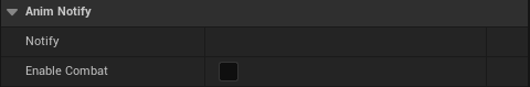 - 애니메이션 몽타주에서 설정한 값을 보면 Combat Enable 값을 변경할 수 있음