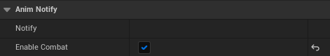 - 애니메이션 몽타주에서 설정한 값을 보면 Combat Enable 값을 변경할 수 있음