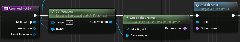 - 찾은 무기로 부터 장착할 위치의 소켓을 받아와 소유자에게 부착(장착)