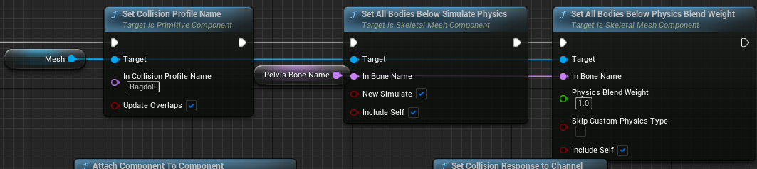 - ProfileName을 설정하고 현재 CollisionProfileName을 ragdoll으로 변경하고 충돌 설정을 덮어씀